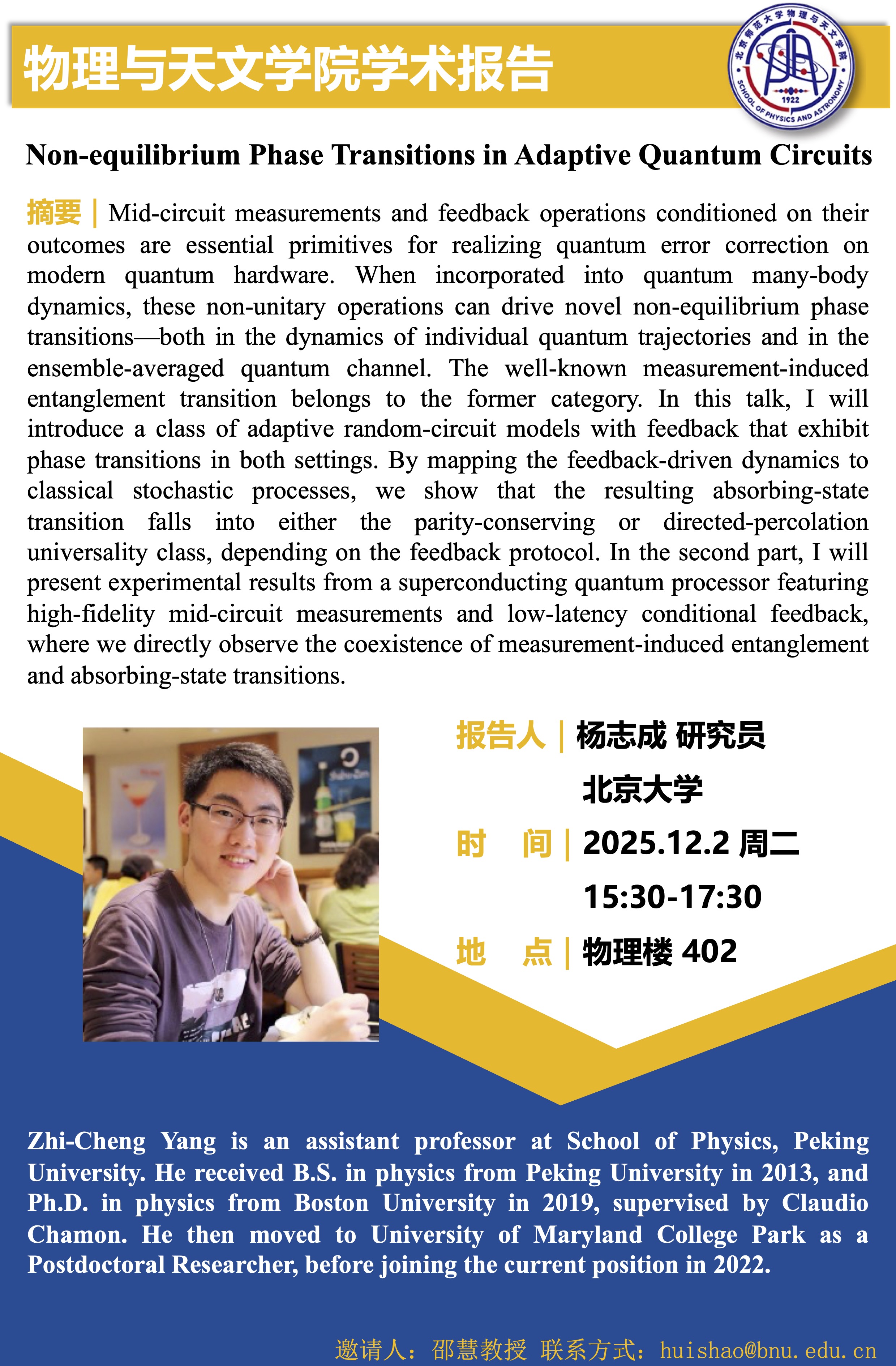 时间:11月26号 10:00–12:00学术报告 13:00–16:00 座谈交流
