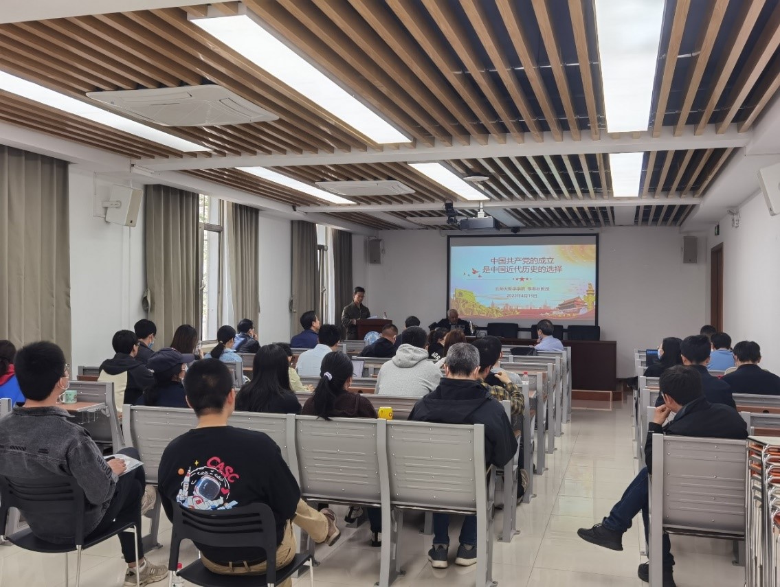 在全党开展党史学习教育是以习近平同志为核心的党中央的重大决策。为贯彻落实中央和学校的部署,2022年4月13日下午,天文系党总支邀请北师大哲学学院李春秋教授,在北师大南院F座108会议室做了题为“中国共产党的成立是中国近代历史的选择”的党史学习讲座,天文系师生党员和部分群众共计39人参加了这次活动。