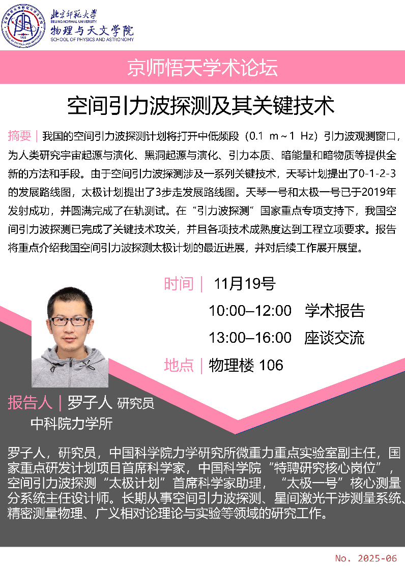 本次活动为“京师悟天学术论坛”第六期,面向全院师生开放,欢迎感兴趣的老师和同学踊跃参加。
