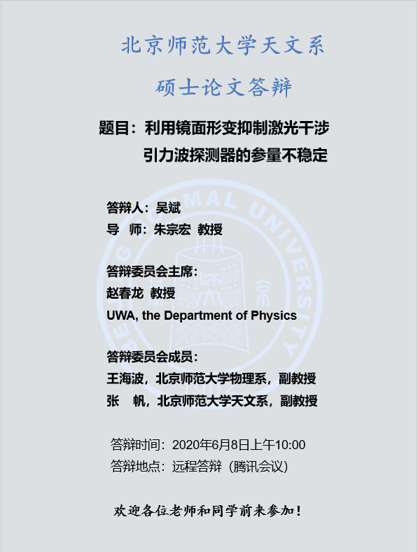 硕士答辩(吴斌):利用镜面形变抑制激光干涉引力波探测器的参量不稳定