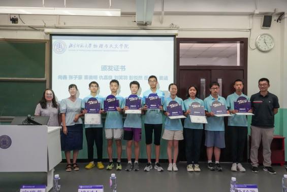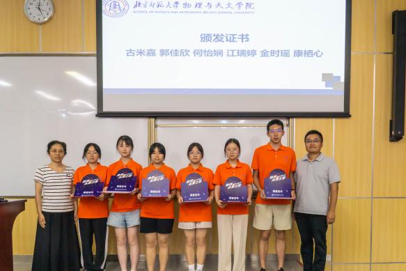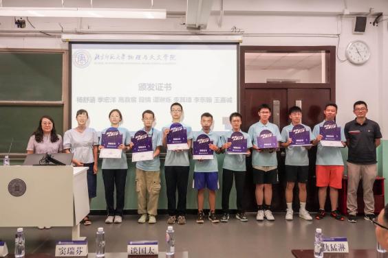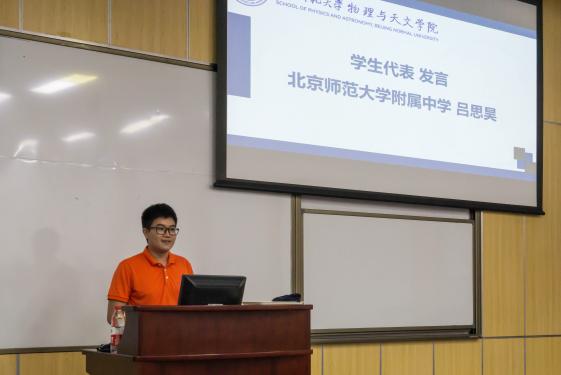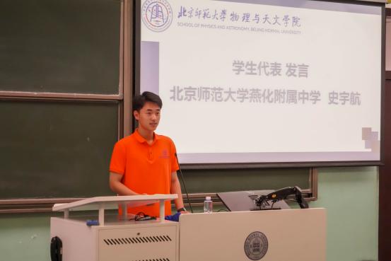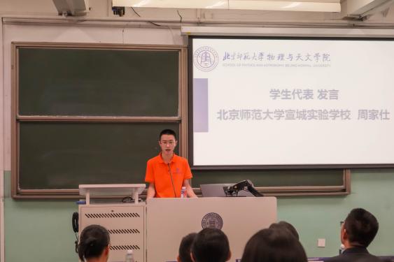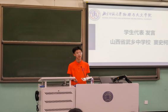 山海自有归期,风雨自有相逢,转眼间,为期两周的夏令营迎来了令人期待的结营仪式。闭幕式上,大家齐聚一堂,共同庆祝同学们在夏令营中的成长与收获。来自a漫画 燕化附属中学的史宇航同学、a漫画 宣城实验学校的周家仕、山西省武乡中学校的窦史柯同学、深圳中学的金裕振同学、北京十三中学的杨舒涵同学、a漫画 附属中学的吕思昊、北京市一零一学校的李宣仪、北京市第57中学的王梓硕同学作为优秀营员代表,分别上台和大家一起分享了在夏令营期间的收获和感悟。立于结营门槛,他们满怀感激与不舍,纷纷表示,夏令营是一次宝贵的探索之旅,每一天都难忘而充实,在这里,感受了北师大的风采,积累了丰富的学习经验,领略了物理学的魅力,学会了从不同角度思考问题,收获了珍贵的友谊,并对未来的学业选择有了更清晰的认识。未来,他们将带着这份热情和好奇心,继续在物理的海洋中遨游,追求真理,探索未知。