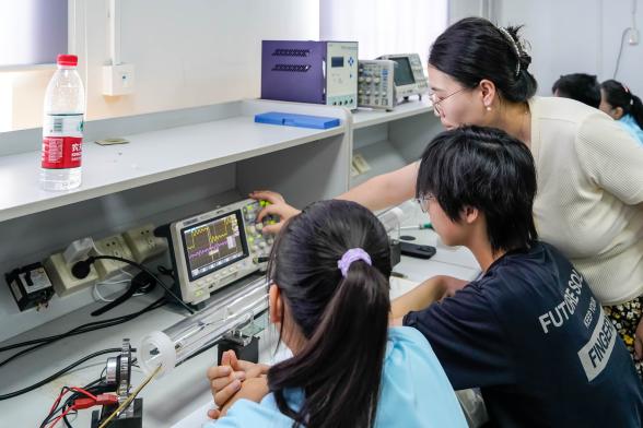 创新实践课是夏令营的重要组成部分。在实验室里,同学们化身小小科学家,通过动手实验,感受力电经典实验,探究声音的本质,领略全息照相的奇妙,探寻光的奥秘。在老师们的指导下,同学们通过观察实验现象,记录实验数据,总结实验成果,将抽象的物理理论知识变成了触手可及的现实,领略物理世界的奇妙,解密科学的密码,亲眼见证了物理学的神奇与魅力,感受到实验成功后的喜悦。创新实践课堂不仅锤炼了学生的动手能力与合作精神,更让他们对物理学的原理有了更加深刻的理解,原来每个物理实验不仅能呈现出美的物理现象,还有繁琐冗长的数据和结论,课本上朴素简洁的公式背后是更多人的呕心沥血。