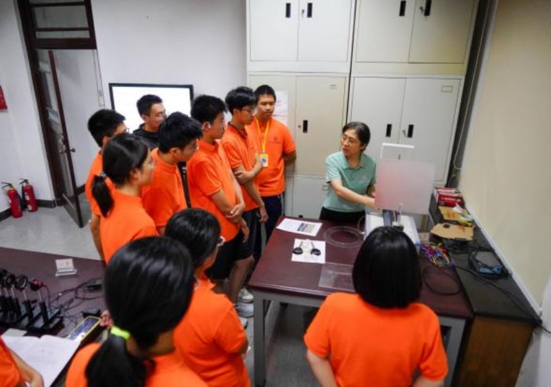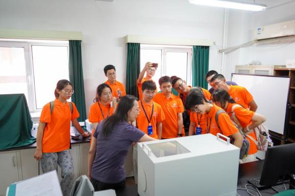 科学拓展环节,是学子们最期待的华彩篇章。学子们深入科研腹地,亲手触摸前沿科技的蓬勃脉动。他们目睹了精密的X光透镜如何“驯服”神秘射线,使其穿透万物,守护生命与安全;感受了粒子加速器孕育的“万能探针”与“原子刻刀”,在航天材料、芯片、文物修复乃至大气研究中刻下创新印记;惊叹于突破性的离子束技术施展“点金术”,赋予材料表面新生,为国防、航天、电子与健康注入澎湃动力。在绿色能源领域,清晰的太阳能材料研发链条勾勒出未来能源蓝图。微观世界则成为纳米“雕刻家”的舞台,脉冲激光与磁控溅射精雕细琢,操控量子态材料。更令人震撼的是,尖端显微镜如同“科学慧眼”,不仅洞悉磁畴电畴的隐秘“舞蹈”,为下一代存储与量子计算埋下火种,更能借量子隧穿之力,清晰呈现原子精妙排布与电子态,揭开量子世界的神秘面纱。每一次观察与体验,都在学子心中点燃了探索未知、点燃创新的火种。