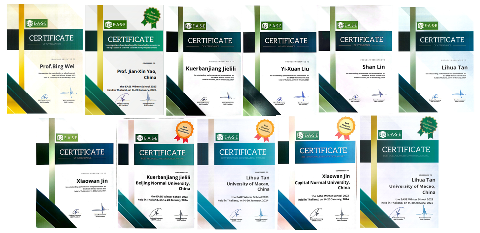 我系博士生库尔班江·杰力力的个人研究提案展示获得了“最佳研究提案展示奖”(Best Proposal Presentation Award)。我系教师姚建欣作为教练的第三合作研究小组获得了“最佳合作提案奖”(Best Collaborative Proposal Award)
