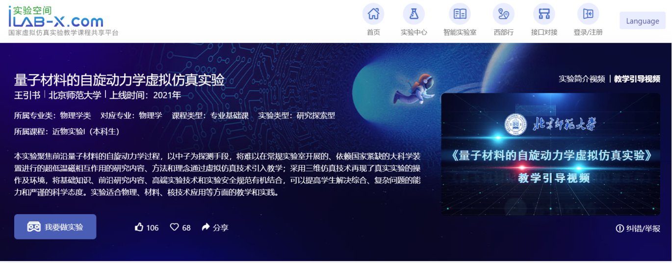 欢迎对虚拟仿真实验课程感兴趣的师生关注“量子材料的自旋动力学虚拟仿真实验”,平台链接//www.ilab-x.com/details/page?id=6318&isView=true。