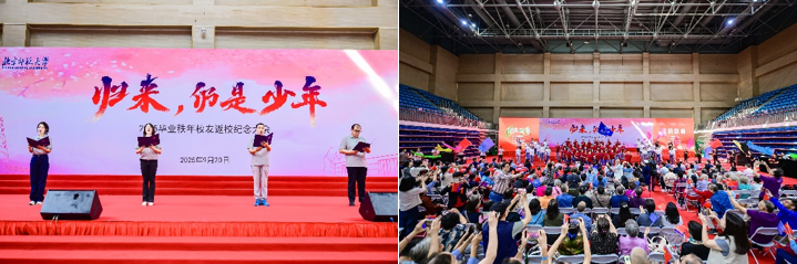 本次返校纪念大会聚焦“归来,仍是少年”主题,吸引了1985届、1995届、2005届、2015届等多届校友参与,总人数超1500名。现场氛围热烈温馨,校友们怀着对母校的深切眷恋,重走校园小径、参观校园新貌,在熟悉的场景中唤醒青春记忆。