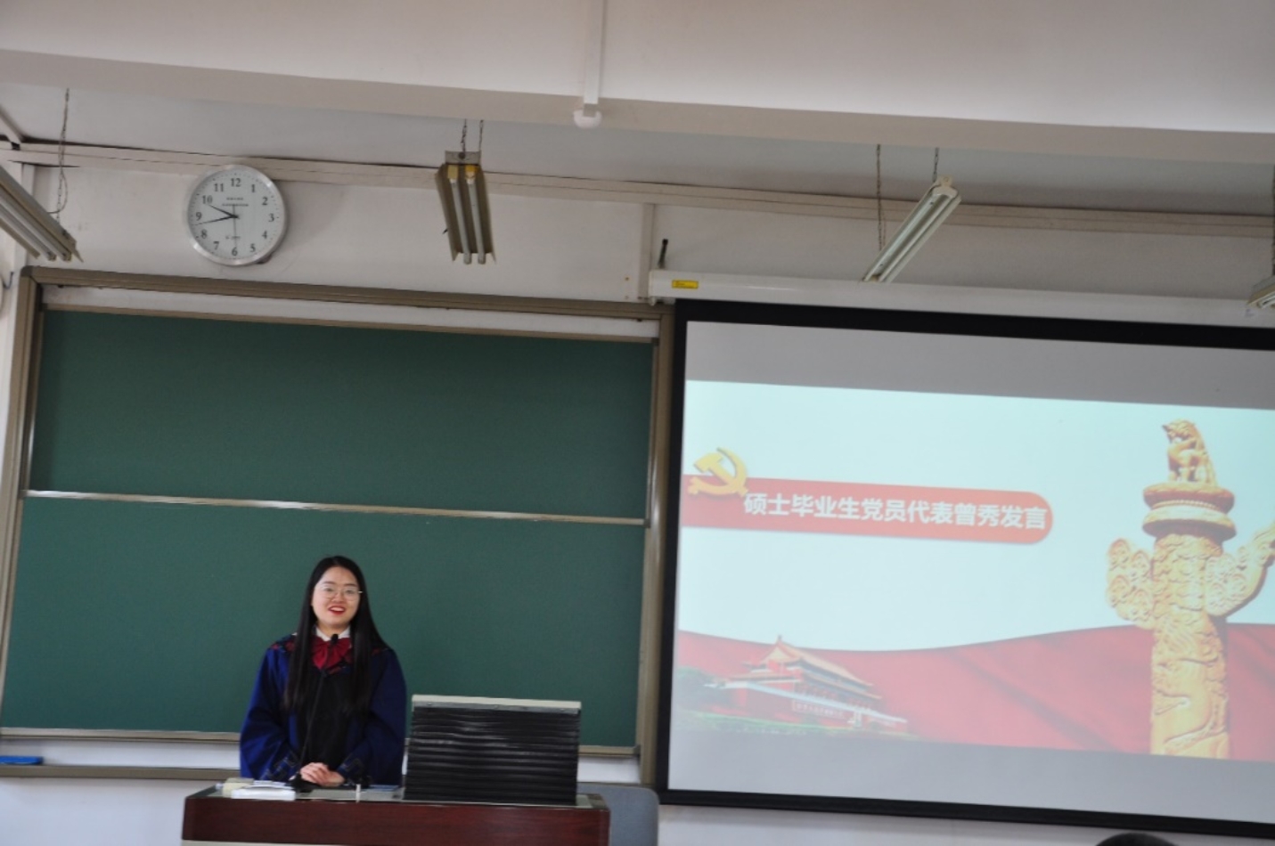 硕士毕业生党员代表曾秀同学讲到,a漫画 “学为人师 行为世范”的校训深刻地影响着自己。自己做为党支部书记,在“学史明理、学史增信、学史崇德、学史力行”的党史教育学习中收获颇丰,会铭记自己党员身份,将先锋模范作用继续传承下去。