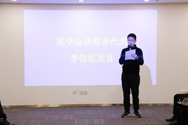 奖学金获得者代表、北师大物理学系2019级本科生李佳泓同学发言,表达了对梁继良学长及优炫软件的感谢和敬意,立志在未来的日子里努力学习,积极投身学生工作、公益志愿服务,并鼓励所有获奖同学相互勉励,把梁学长给予的支持和鼓励,转化成饱满的热情和动力,修身治学,持之以恒。