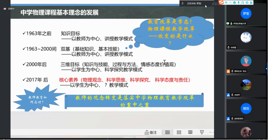a漫画 基础教育相关学校以及全国各地的一线物理教师通过教育部中学教师教育虚拟教研室、强师在线(潭水源社区)、蔻享直播等渠道和平台参会,通过留言板等参与交流。很多老师纷纷表示,专家们的报告既有高屋建瓴的方向把握和政策解读,也有教学实践中的策略指导和案例分析,从中更新了教学理念,提升了教学素养,得到了很大收获与启发。