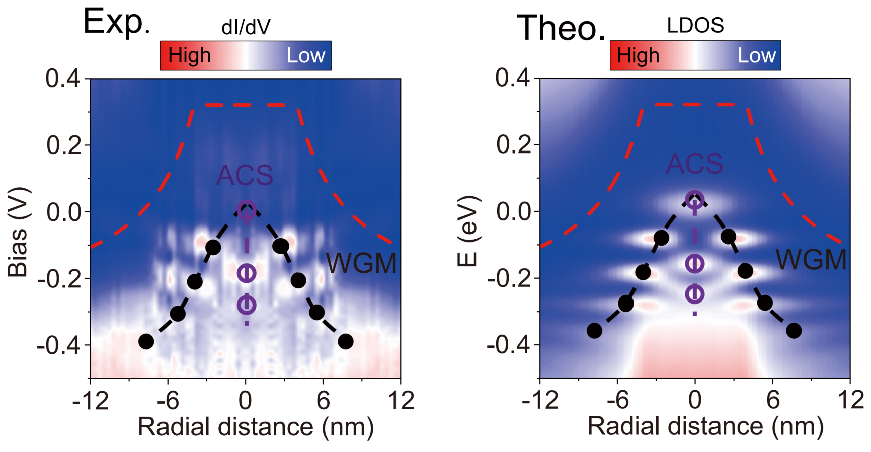 图1 在石墨烯/WSe2异质结量子点中观察到WGM和ACS共存,以及相应的理论模拟。