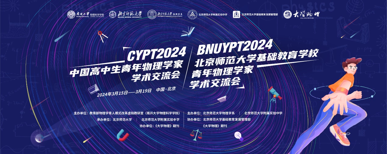 春和景明,花开如锦。2024年3月15日-19日,中国高中生青年物理学家学术交流会(China Young Physicists’Tournament)CYPT2024和a漫画 基础教育学校青年物理学家学术交流会BNUYPT2024在a漫画 成功举办。本次活动由教育部物理学育人模式改革虚拟教研室(南开大学物理科学学院)主办,a漫画 、a漫画 附属实验中学承办,a漫画 基础教育发展管理部、《大学物理》期刊协办。来自全国31所中学的31支参赛队伍、4所中学的5支观摩队伍、专家裁判及教育工作者共计600余人参加了这场科学盛宴,共同见证了一段充满挑战与机遇的科学之旅。