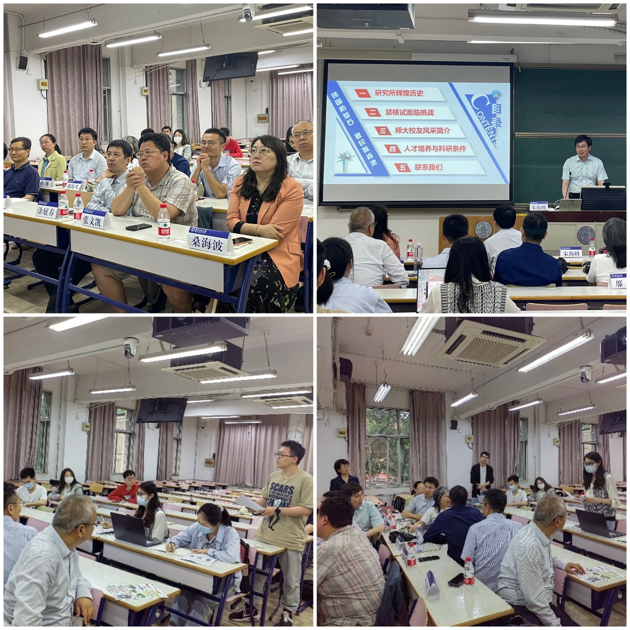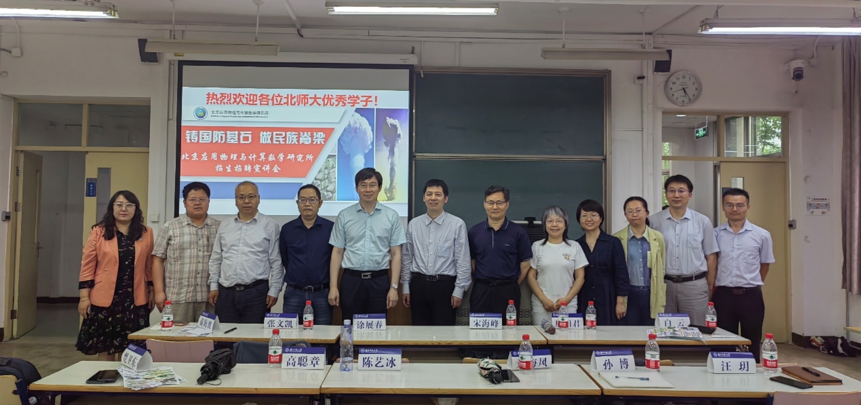 2023年5月19日,为加强校友与母校的联系,了解校友近年发展现状,凝聚校友力量,共谋发展篇章,物理学系与北京应用物理与计算数学研究所(简称北京九所)开展了校友返校交流暨招生招聘咨询活动。北京九所副所长宋海峰,科技委主任、2002届校友应阳君,人资处处长白云以及各研究室学术骨干等多位师大校友参加了此次交流活动。物理学系党政班子成员和教师代表出席会议。