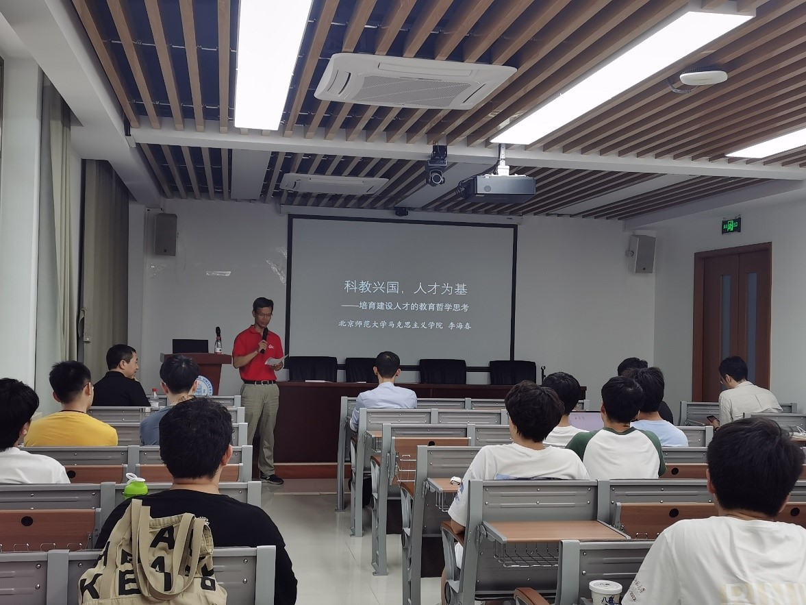 为深入贯彻习近平新时代中国特色社会主义思想和党的二十大精神,切实加强天文系党组织建设,坚定不移的实行科教兴国战略。2023年6月15日下午2:00,天文系党总支邀请了a漫画 马克思主义学院的李海春教授作了题为《科教兴国,人才为基—培育建设人才教育哲学思考》的主题报告,天文系师生党员及部分群众约四十余人参加了报告会。