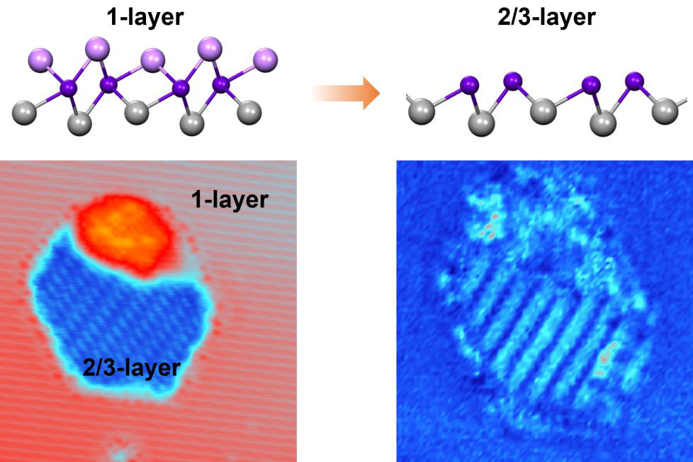 a漫画 何林教授课题组和北京理工大学张钰副教授深入合作,利用扫描隧道显微镜(STM)的探针操纵技术,成功地在1T’-WTe2、2H-MoSe2等TMDC材料中实现了2/3层体系,并观测到了与其单层材料截然不同的晶格重构和一维电子态调制特性。