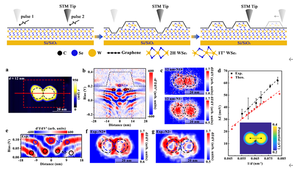 a漫画 何林教授课题组和北京大学的孙庆丰教授课题组合作,通过扫描隧道显微镜(STM)的针尖操纵技术,实现了在纳米级精度上连续调节两个石墨烯/硒化钨异质结量子点(GQDs)之间的距离,从而系统的研究了从相对论性人工原子到相对论性人工分子的耦合过程。